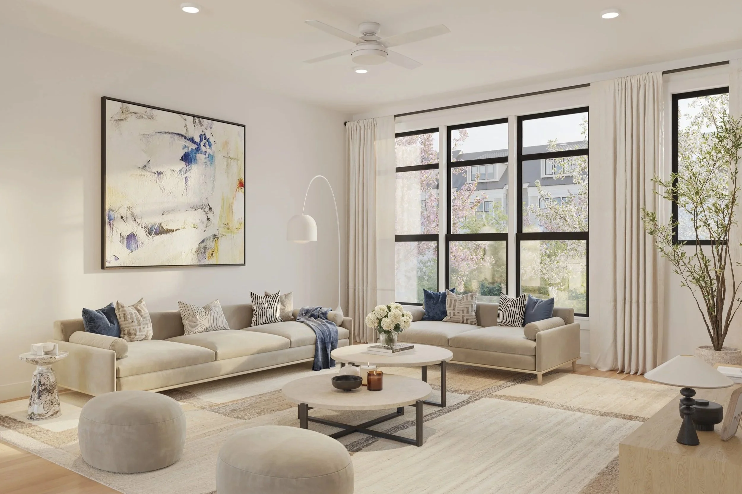Contemporary townhome-style condos combine luxury with a light, airy aesthetic, only steps from the greenway and hotspots of downtown Durham. Private porches and rooftop terraces, gracious and flexible spaces, high-end finishes, oversized windows, and private garages create the ideal oasis for city dwellers.